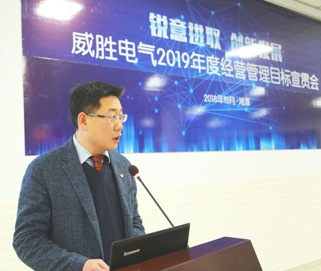 隨后,電氣總裁曾總上臺發(fā)言,他首先回顧總結(jié)了威勝電氣2018年的經(jīng)營管理情況,肯定了電氣全體員工敢闖敢拼的精神和2018年度取得的成績,并代表電氣經(jīng)營管理團(tuán)隊,向一直以來對電氣發(fā)展給予關(guān)心、支持的控股董事會及控股、集團(tuán)、信息的各位領(lǐng)導(dǎo)表示衷心的感謝!