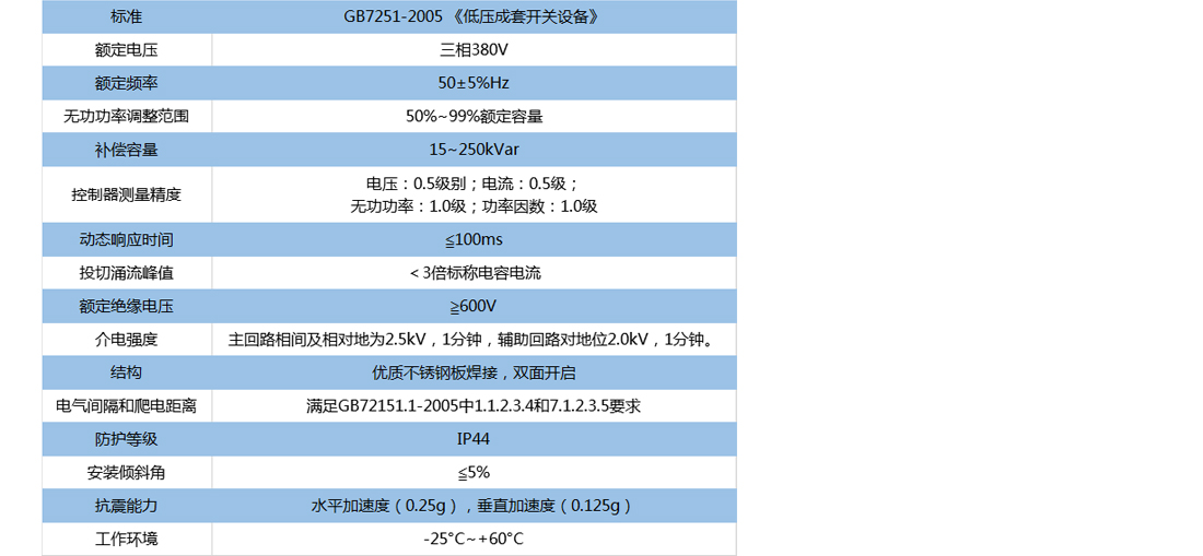 無功補償︰固定步長、共補、分補組合,可實現(xiàn)自動循環(huán)智能投切,無投切震蕩,無補償呆區(qū);顯示內(nèi)容︰三相電壓、電流、功率因數(shù)、無功功率、有功功率、諧波電壓畸變率、諧波電流畸變率。