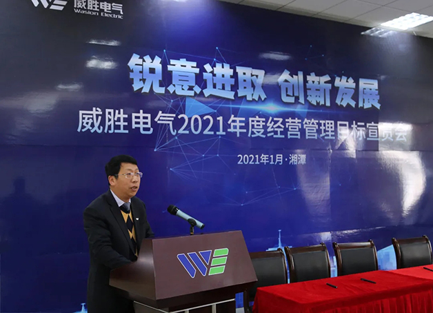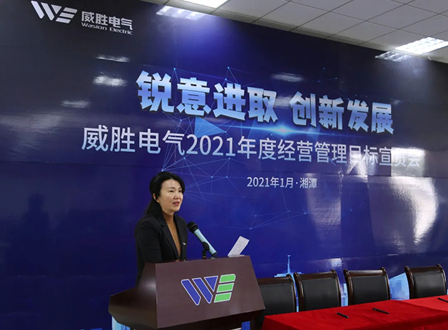 百年交匯描繪新藍圖,謀篇布局開啟新征程。1月8日上午,以“銳意進取、創新發展”為主題的威勝電氣 2021 年度經營管理目標宣貫會在電氣產業園順利召開,控股董事會吉主席及控股本部、威勝集團、威勝國際領導,威勝電氣經營管理團隊成員、干部代表共計80余人參會,會議由威勝電氣行政人力總監鄧超艷女士主持。