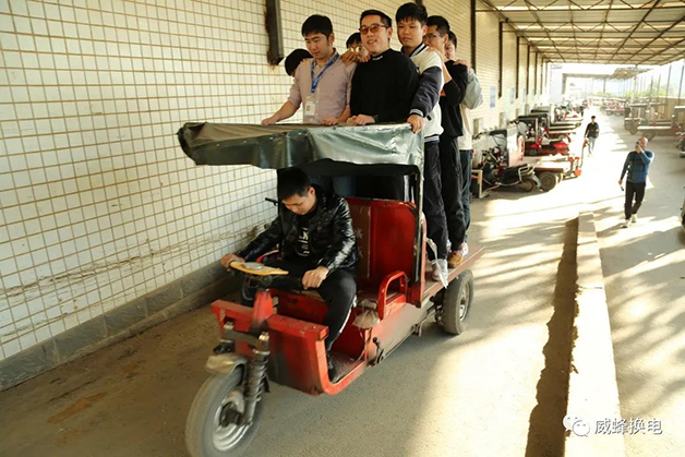 在現場,威蜂技術人員全面測試了改造后的換電電三輪,測試其運轉、負載、及爬坡能力!測試成果均達到了預期。下一步,威蜂還將繼續積極響應市場需求,深入對傳統兩輪/三輪電動車的換電改造升級的探索與應用,助力換電技術在更多行業、更多場景的應用。