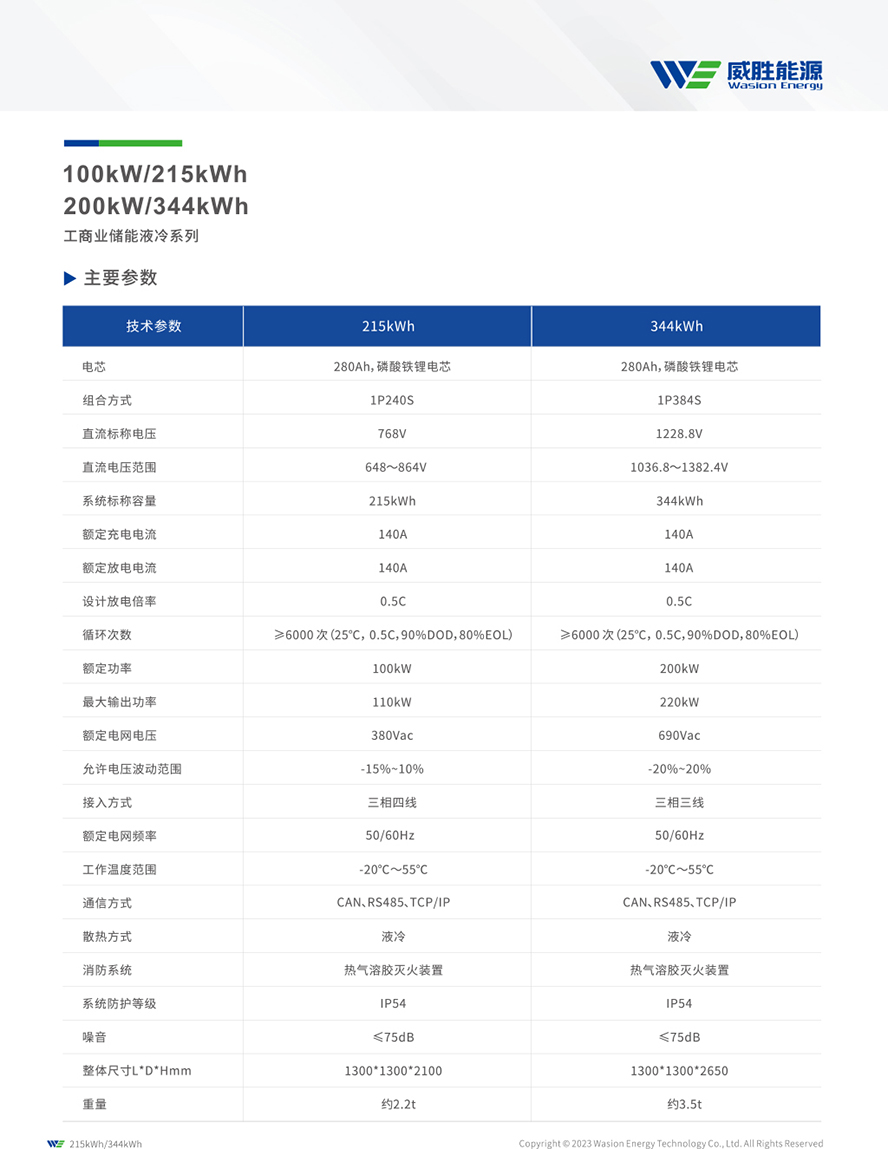 • 200kW/344kWh 工商業儲能液冷系列