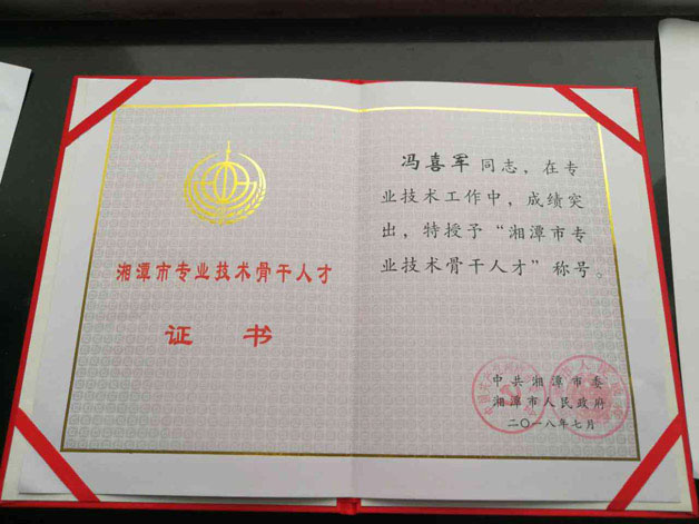 湘潭市專業(yè)技術(shù)骨干人才證書
