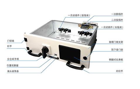1/2、1/4抽屜結構:1/2及1/4抽屜操作方式為手拉式三位置操作機構。開關合閘,抽屜與柜體聯鎖,無法拔出抽屜,1/2及1/4抽屜采用一側無側板的制作方法,方便成套廠家安裝元器件及接線,1/2抽屜能滿足125A電流的側、后出線方案。1/4抽屜可以滿足63A側、后出線方案。